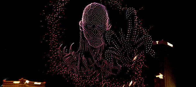 On Sunday, December 28 an epic Stranger Things drone show lit up the Las Vegas sky, bringing iconic moments from the series to life. This Hawkins-inspired gathering with 5000 choreographed drones & pyrotechnics marked the largest and most ambitious public drone show in the US with the largest functional characters to date and hundreds of fans gathered along the Las Vegas Strip to watch with a surprise appearance from Vecna himself – Jamie Campbell Bower.