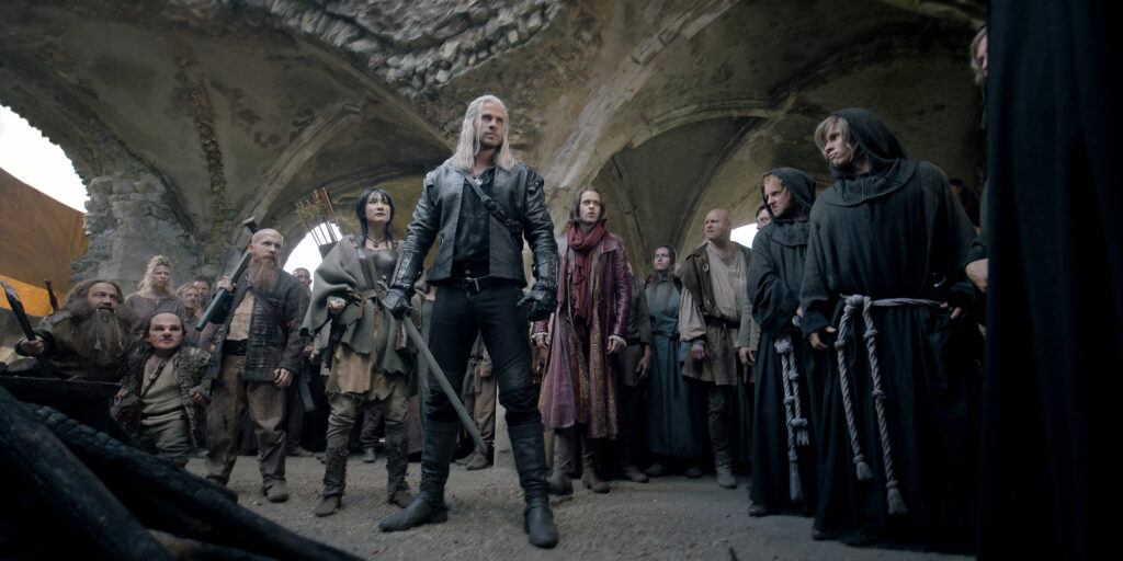 Cast: Liam Hemsworth (Geralt of Rivia), Anya Chalotra (Yennefer of Vengerberg), Freya Allan (Princess Cirilla of Cintra), Joey Batey (Jaskier), Laurence Fishburne (Regis), Eamon Farren (Cahir), Anna Shaffer (Triss Merigold), Mimî M Khayisa (Fringilla), Cassie Clare (Philippa), Mahesh Jadu (Vilgefortz), Meng’er Zhang (Milva), Graham McTavish (Dijkstra), Royce Pierreson (Istredd), Mecia Simson (Francesca), Sharlto Copley (Leo Bonhart), Danny Woodburn (Zoltan) Jeremy Crawford (Yarpen), Bart Edwards (Emhyr), Hugh Skinner (Radovid), James Purefoy (Skellen), Christelle Elwin (Mistle), Fabian McCallum (Kayleigh), Juliette Alexandra (Reef), Ben Radcliffe (Giselher), Connor Crawford (Asse), Aggy K. Adams (Iskra), Linden Porco (Percival Schuttenbach), Therica Wilson-Read (Sabrina), Rochelle Rose (Margarita), Safiyya Ingar (Keira) and more.