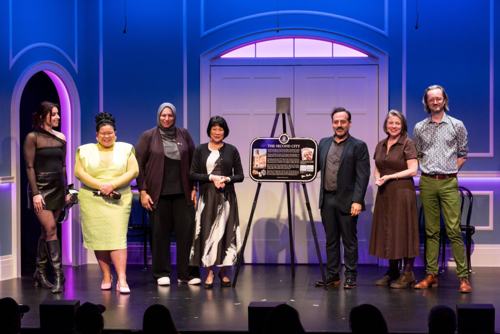 The plaque was presented by Toronto Mayor Olivia Chow and Deputy Mayor Ausma Malik, along with Etan Muskat, Artistic Director of The Second City Toronto, Julie Dumais Osborne, Vice-President of Second City Training Centers, and Ann Pornel, host and Second City Toronto alumna.