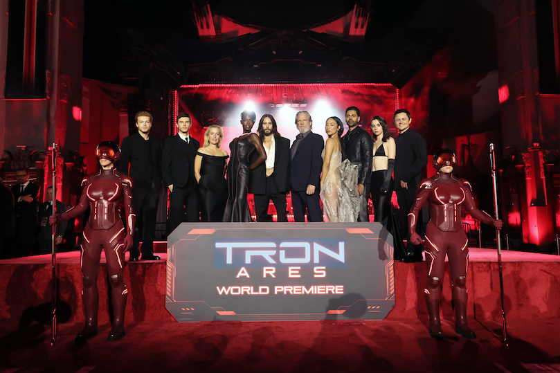 Cast and filmmakers from “TRON: Ares” including Jared Leto, p.g.a. (also producer), Greta Lee, Jeff Bridges, Gillian Anderson, Evan Peters, Jodie Turner-Smith, Hasan Minhaj, Arturo Castro, Joachim Rønning (director), Trent Reznor (original music by, executive producer), Atticus Ross (original music by, executive producer), Jesse Wigutow (screenplay and story by), David DiGilio (story by), Steven Lisberger (producer, based on characters created by), Sean Bailey (producer), Emma Ludbrook, p.g.a. (producer), Jeffrey Silver (producer), Justin Springer, p.g.a. (producer), Russell Allen (executive producer) and Joseph Kosinski (executive producer) convened at the TCL Chinese Theatre in Hollywood last night for the film’s electrifying World Premiere.