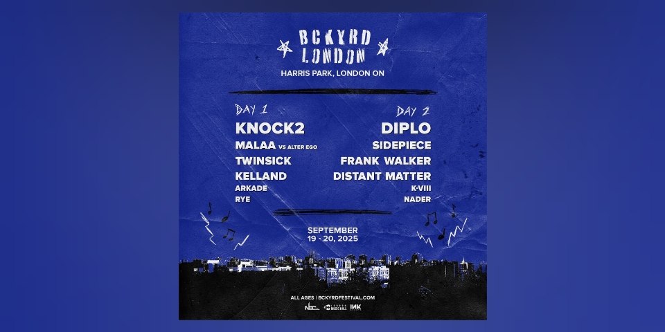 BCKYRD London is the city’s newest electronic music festival, taking over Harris Park September 19 & 20, 2025 with two days of massive beats and open-air energy. Featuring headliners Knock2, Diplo, and more, the festival brings world-class talent to the heart of London, Ontario. Get ready for an incredible debut weekend where the city’s backyard becomes the ultimate dancefloor.