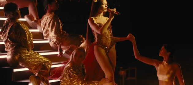 Most of the first act takes place in a giant shed where Sam keeps her materials, and leans heavily into the cloudy conversation. It’s a breath of fresh air when the Movie shifts focus to the flashbacks, flashforwards and dream sequences that move us outside. I could use plenty of adjectives to describe Mother Mary, but ‘ugly’ certainly isn’t one of them. The Cinematography and Costume Design are unrelentingly gorgeous. It’s no wonder that the very first credit (after the film cuts to black) is Dress Designer Iris Van Herpen. I’m not a fashion connoisseur by any stretch, but even if you have a modicum of appreciation for the wardrobes of the rich and famous, you’ll get a kick out of these costumes. It’s too bad the title “Phantom Thread” was already taken. Sometimes I wondered if the story of Mother Mary was just an elaborate delivery device for these haunting visuals, and a hard launch for Hathaway’s evolution into a Pop Star. Her performance, which involves extensive concert sequences, feels incredibly authentic. By the mid-point of Mary, I was convinced that in some alternate universe, Hathaway might have found fame belting anthems to sold-out stadiums.
