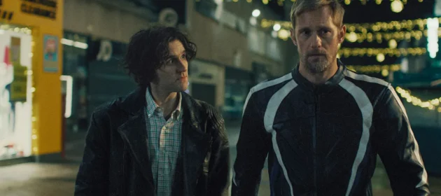At the core of the story are Colin (Harry Melling) and Ray (Alexander Skarsgård), two very unlikely lovers, polar opposites actually, who cross paths. Their whirlwind dom-sub romance begins with an alleyway hookup, that turns into more than they and we could have expected. Colin hands out parking tickets during the day and sings in his dad’s barbershop quartet at night, he’s passive and soft-spoken, sexually inexperienced. Ray is intentionally mysterious, and we don’t know much about him other than that he’s part of a biker gang.