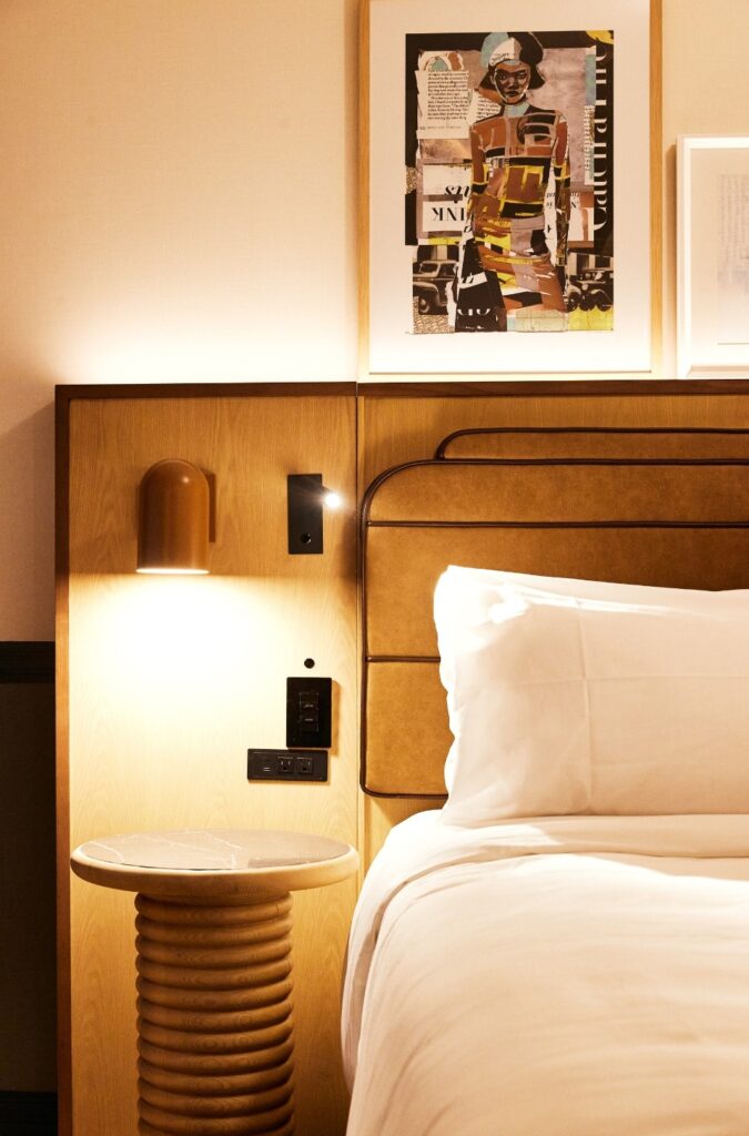 â—Ź Curated In-Room Experience: Four room styles: Chic, Groovy, Swanky, and the Posh Suite. Each room’s walls are adorned with original artwork from local artists inspired by Toronto, the nostalgia of the hotel’s location, and the unity of people. Details in the room were curated to reflect the Union Hotel’s commitment to creating a unique guest experience. The hotel worked with Whence, a hospitality marketplace and procurement studio, to curate and co-design thoughtful products such as Montreal-based circular design company Cyrc’s soap dishes, trays, and tissue box covers, bamboo toilet paper, amenities by woman-owned Routine Natural Beauty, a bespoke tea and third wave coffee experience with temperature controlled kettles, and alarm clocks that provide guests with soothing sleep sounds and sleep stories.