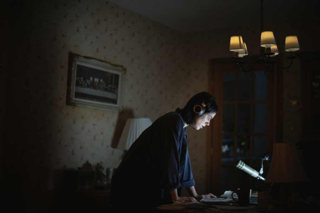 The host of a popular paranormal podcast becomes haunted by terrifying recordings mysteriously sent her way.